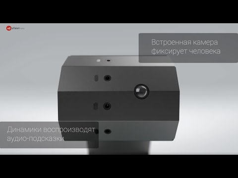 Электронный автономный терминал для дистанционного распознавания повышенной температуры у людей. Инструкция по использованию максимально простая, нужно всего-лишь встать на отмеченную позицию. После этого действия, терминал считывает при помощи инфракрасных датчиков температуру тела, мнгновенно фотографирует человека и в ту же секунду выдаёт показания на экране. Данные об измерениях хранятся в базе.